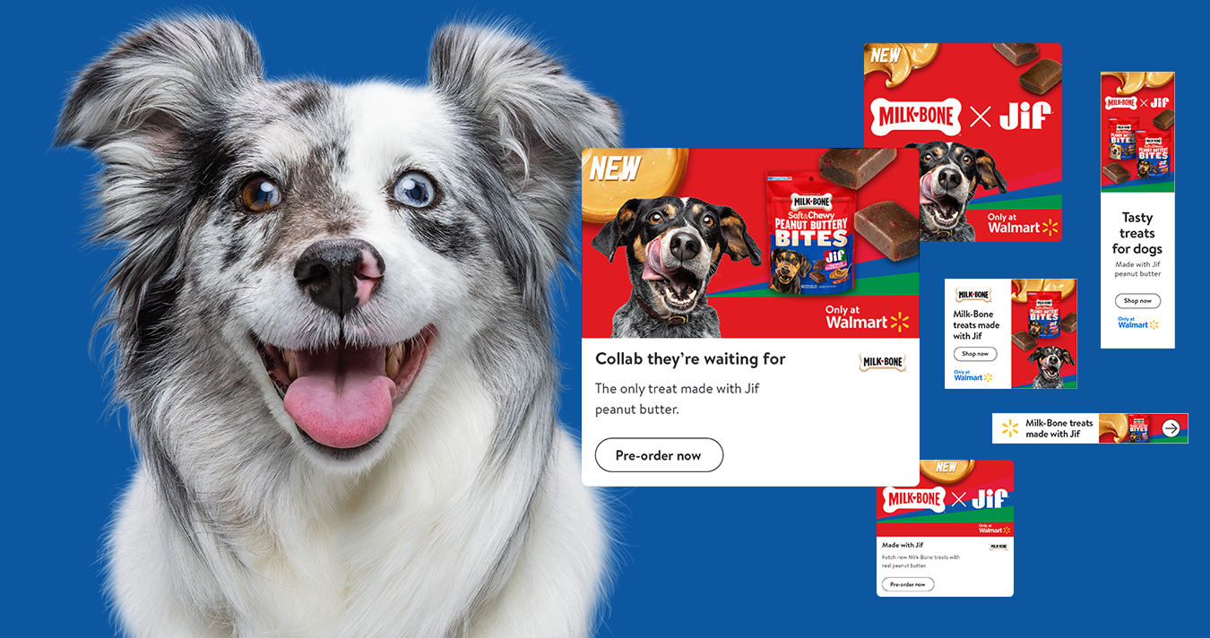 Instead of following the national campaign, commerce led the way. We embraced collab culture, turning the Milk-Bone + Jif partnership into an exclusive Walmart moment. From playful creative to pet-parent activations, the idea was built to thrive in-store, online, and in social — right where shoppers make decisions.
